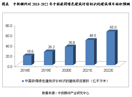 我们预计,截至2018年底,我国获得绿色建筑评价标识的建筑项目面积将达到18.6亿平方米;截至2022年底将达到65.0亿平方米。